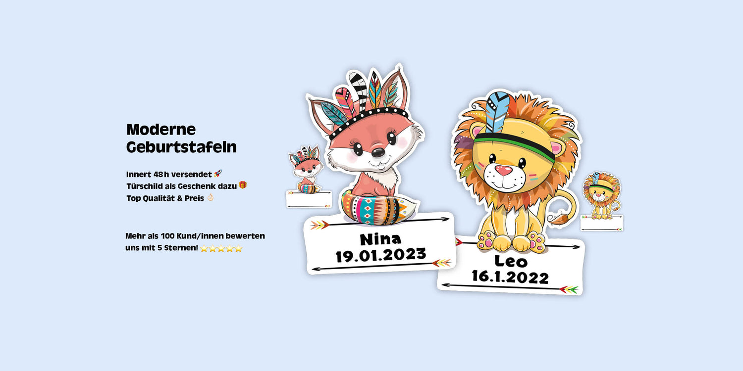 Geburtstafel Indianer Tier Fuchs - einfach und schnell in der Schweiz bestellen