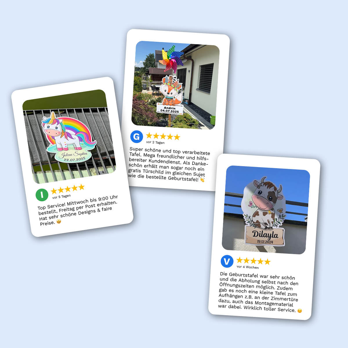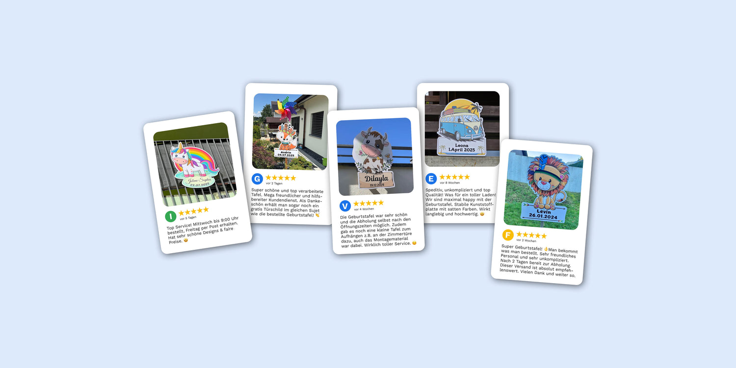 50% unserer Geburtstafeln werden noch am selben Tag versendet.