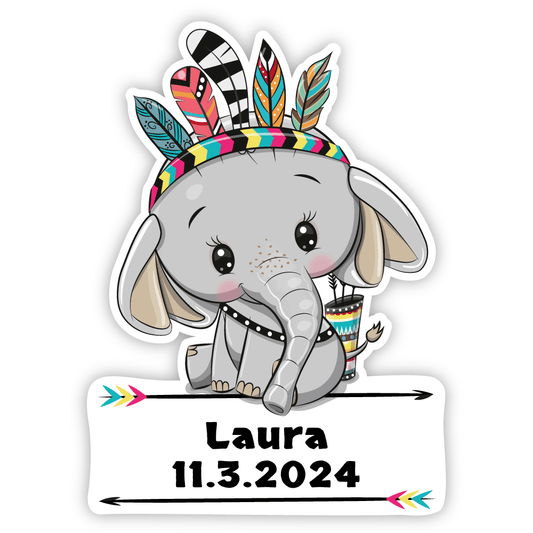 Geburtstafel Indianer Tier Elefant- einfach und schnell in der Schweiz bestellen.